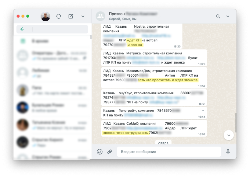 6. На 3й рабочий день начинаем обзвон. Обычно уже в этот день начинают поступать лиды. Отправляем их вам в рабочий чат для обработки.